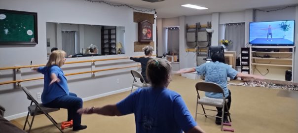 Neither rain nor snow nor ice shall keep the Seated Exercise group away, meeting MWF 9:30-10:30 for cardio, strengthening, balance, and extra work on those abs. It is a drop-in class, so please join us at the Clubhouse!